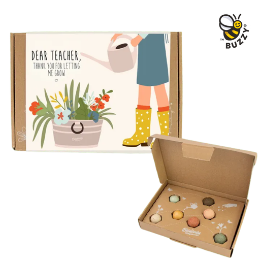 View full detailsShow teacher appreciation with the heartfelt Dear Teacher seed bomb box! This thoughtful 7-pack features Blossombs wildflower seed balls handcrafte...