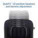 - QuikFit is our integrated headrest and harness system that adjust easily without rethreading the harness and offers 10 positions to support all growth stages
