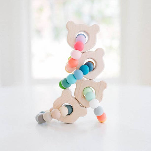View full detailsBannor's mini bear teether is perfect for the tiniest of babes! A maple bear face on soft silicone beads gives baby different textures to chew on. ...