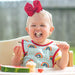 This unique, patent-pending design allows your child to play freely with their food or sensory activities without constricting around their neck like a traditional bib and your tiny tot can't remove it without a grown-up. Less mess for everyone! (It rinses clean in the sink between meals as well, saving you headache and laundry.)